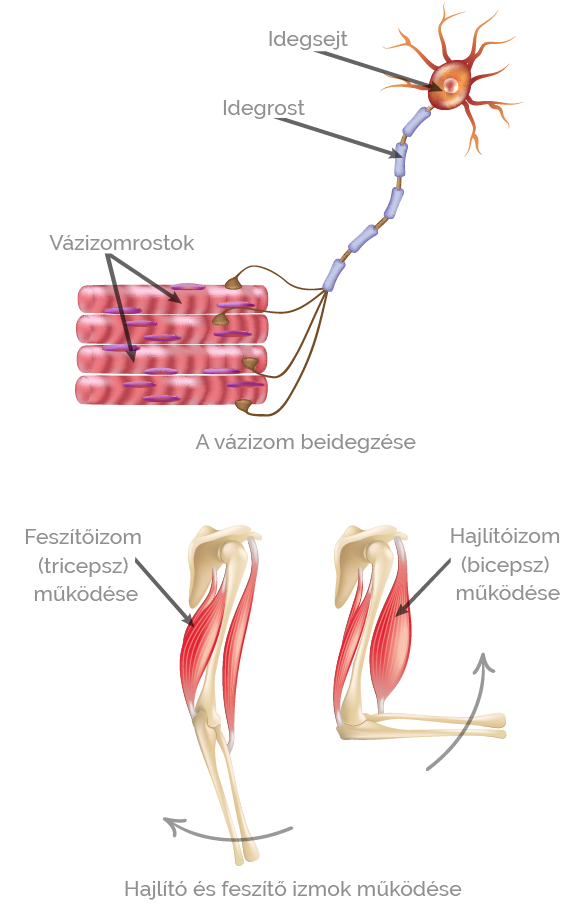 A test vázizomrendszerében találhatók olyan párok, amelyek működése egymással ellentétes mozgást eredményez, ilyenek a hajlító- és feszítőizmok. A végtagokban a hajlítóizmok működése során az ízületek behajlanak, a feszítőizmok működése pedig kinyújtja azokat.