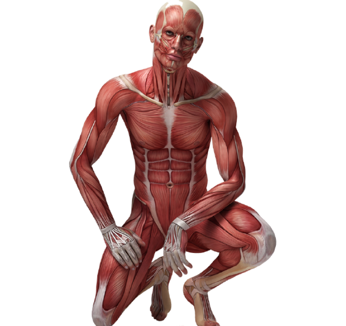 Az emberi test vázrendszerének mozgatásáért 350 kisebb-nagyobb izom felelős, amelyek a fej, a nyak, a törzs, a kar vagy a láb izmait alkotják. A Másik neve vázizomszövet. Az izomszövetek egyik típusa, ízeltlábúakban és gerincesekben fordul elő. Hosszú, sok sejt összeolvadásával keletkező rostok alkotják, amelyekben a fehérjefonalak jellegzetes sávos mintázatban rendeződnek el, innen kapta a szövet a nevét. Gyors és nagy erejű összehúzódásra képes, viszont fáradékony.harántcsíkolt izomszövetből álló vázizomzat a test legnagyobb tömegű szervrendszere. Az izmokat harántcsíkolt izomrostokból álló izomkötegek építik fel. A kötegeket és magát az izmot is kötőszövetes burok borítja. Az izom-összehúzódás energiaigényes folyamat, az izomrostok tápanyag- és oxigénellátását dús érhálózat biztosítja. Az izmot A kötőszövetek egyik típusa, amelyet általában sűrűn, párhuzamosan futó rostok és a közöttük található sejtek alkotnak. A fehérjerosotok sűrűsége és lefutása miatt nagy a fizikai ellenállóképessége. ebből a szövetből épülnek fel az ínszalagok és az ízületi szalagok is.tömött rostos kötőszövetből álló inak rögzítik a csontokhoz. A rögzülési pontok közül az egyik az izomeredés, a másik az izomtapadás. Az elmozdulás az utóbbi helyen jön létre.