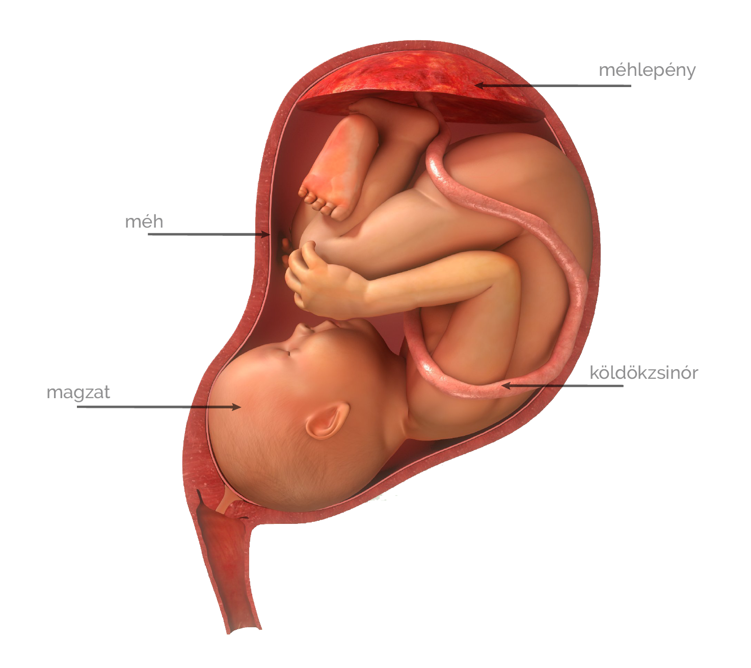 Az érett A metermékenyítést követő kb. harmadik hónaptól így nevezzük a fejlődő egyedet.magzat tömege 3000–3500 g, testhossza átlagosan 50 cm. A terhesség utolsó heteiben a magzat úgy helyezkedik el a méhben, hogy feje a méhnyak felé nézzen. Közvetlenül a szülés előtt a méhszáj kinyílik, a magzatburkok felrepednek, a magzatvíz elfolyik. A méhfal izomzatának ritmusosan ismétlődő, erőteljes összehúzódásai okozzák a szülési fájásokat, és megkezdik a magzat kitolását a szülőcsatornán. A megszületett csecsemő felsír, az első légvétel kitágítja a tüdejét. A A magzatot a méhlepénnyel összekötő szerv, melyben erek futnak. Biztosítja a fejlődő utód számára szükséges tápanyagok és légzési gázok felvételét az anya szervezetéből, illetve a magzatból a bomlástermékek leadását az anya fele.köldökzsinórt a szülést vezető orvos elvágja. A gyermek megszületése után a méhlepény leválik a méhfalról, és az utolsó méhösszehúzódások eredményeként az is világra jön.