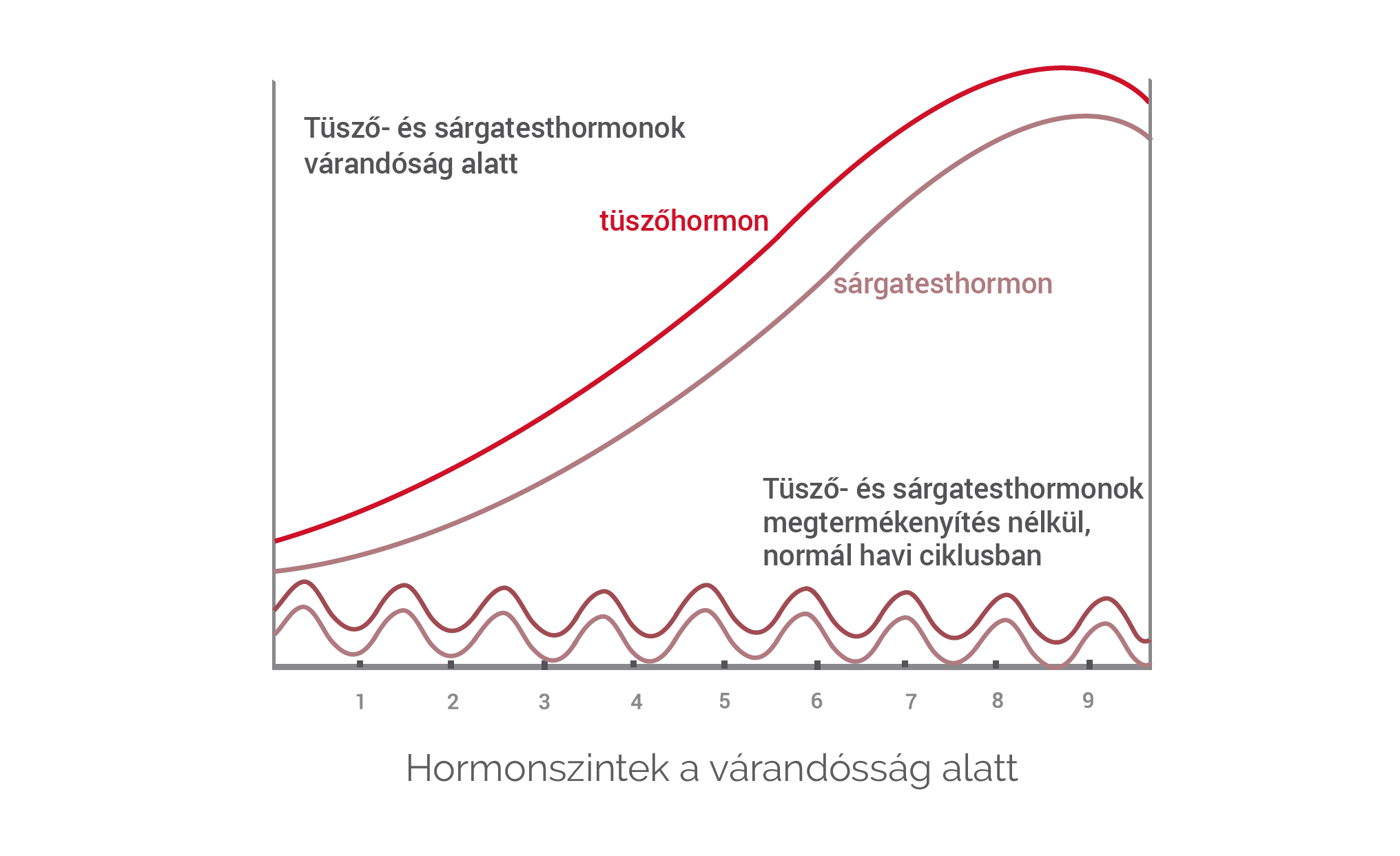 A megtermékenyítést követően a petefészekben a sárgatest nem fejlődik vissza, mivel a fejlődő embrió külső magzatburkának sejtjei az agyalapi mirigy serkentő hormonjához hasonló hormont termelnek. A sárgatest tüsző- és sárgatesthormont választ el, ezek gátolják az új tüsző érését a petefészekben, és fenntartják a méhnyálkahártya fokozott vérellátását. A sárgatest hormontermelését a terhesség 2-3. hónapjától a méhlepény veszi át. A terhesség végén szintén hormonális hatásra indul meg szülés. A szülés után indul meg a tejképzés.